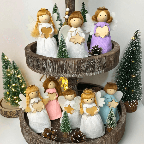 These charming angels bring warmth and joy to your Christmas tree, tiered trays, or holiday table, creating a cozy atmosphere that fills your home with festive spirit and love. Let their presence transform your celebrations into cherished memories that last a lifetime.