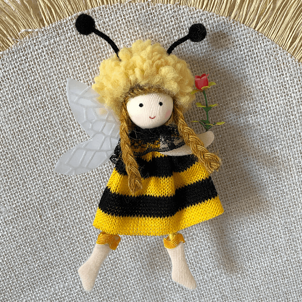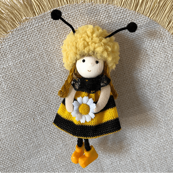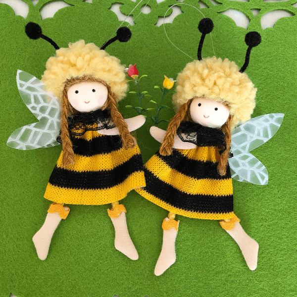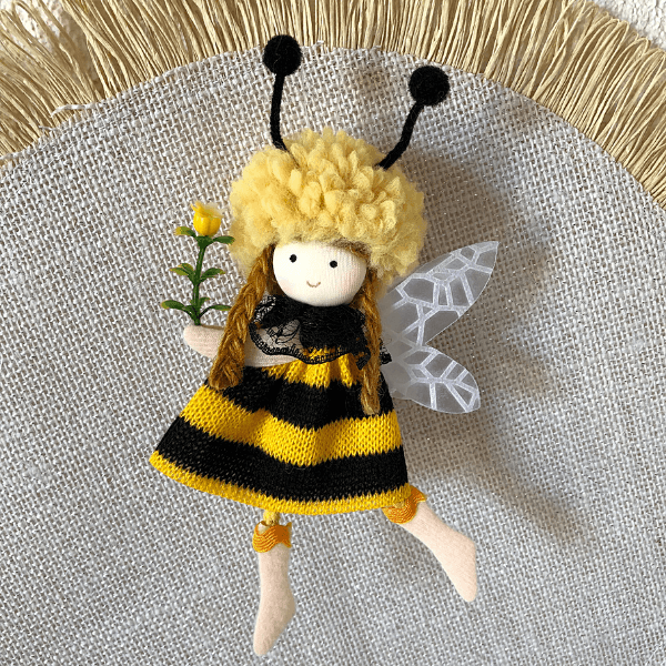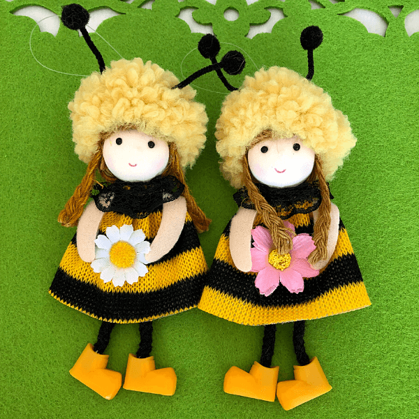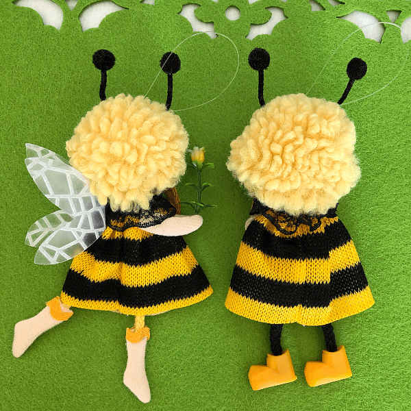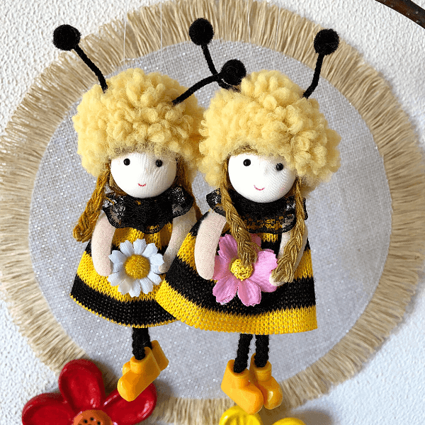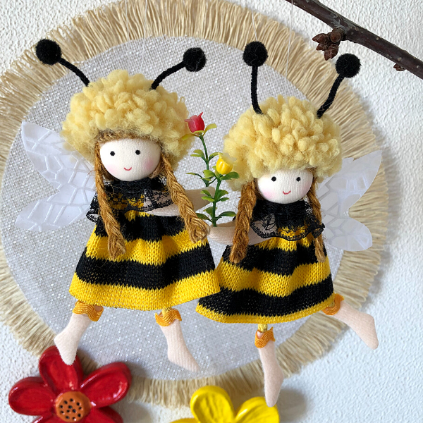 Handmade with fluffy wool, jute braids, and lace accents, each lovable bee decoration features a delicate flower, a sweet smile, and adorable antennae, it comes with a string for hanging.
