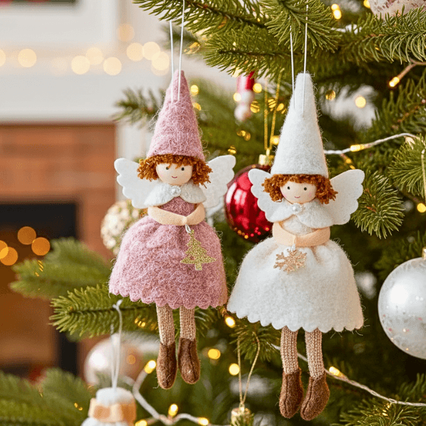 Hang them on your Christmas tree, place them on your mantel, or display them by a window where the light can catch their sparkle. These angels instantly add a feeling of calm and holiday magic wherever they’re placed. Their elegant length and gentle color palette make them blend beautifully with traditional or modern décor alike — perfect for homes, weddings, or festive gatherings.