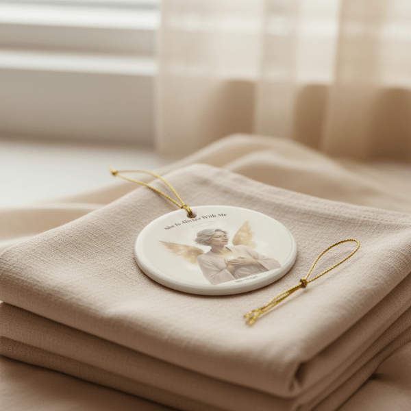 Her presence lives on in every memory, every lesson, every moment she guides you from above. This delicate ceramic keepsake captures that eternal connection—a daily reminder that she is always with you.